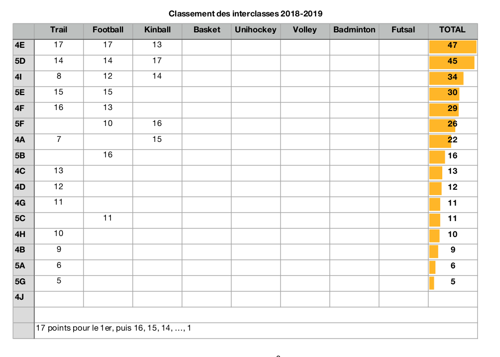 Interclasses publiques !